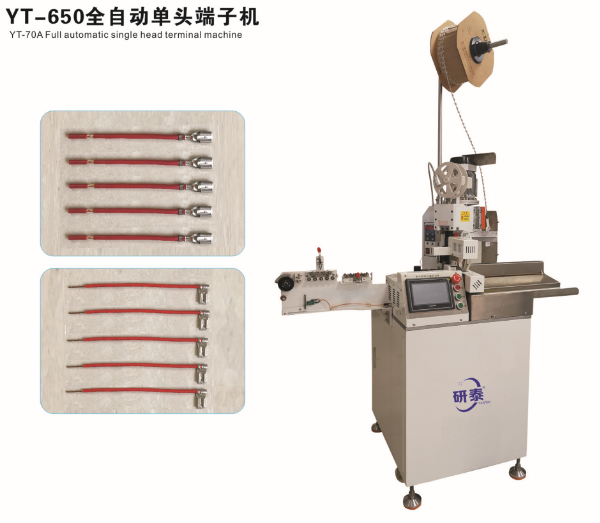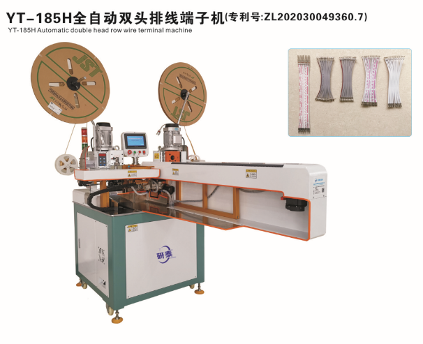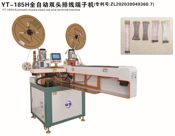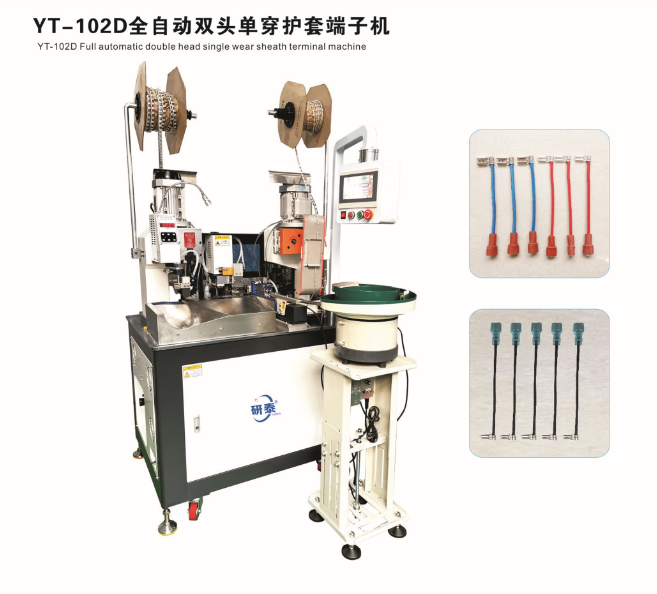 全自動雙頭穿護套端子機、全自動雙頭穿熱縮管端子機、全自動銅帶壓接端子機、全自動雙頭端子機、全自動排線端子機、全自動沾錫打端機、全自動打端插殼機、新能源全自動雙頭穿熱縮管散粒端子機、新能源全自動雙壓單穿激光打號碼管端子機、新能源大平方穿號碼管端子機。